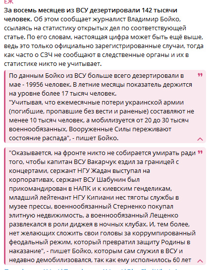 Цитата: Администратор от 23.10.2025, 22:19The Telegraph: из 3,7 млн украинских мужчин призывного возраста более 500 тыс. скрываются от мобилизации в ряды ВСУ и категорически не желают принимать участие в боевых действиях.