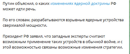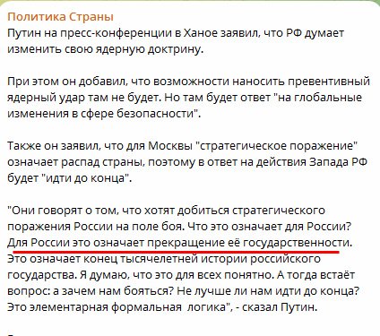 Цитата: MrMuryk от 01.06.2024, 17:53Основной публичный тезис сторонников ударов западным оружием "по основной территории России" (не моя фраза, Кремля) состоит в том, что "так мир наступит быстрее". Мол, Кремль столкнется с реальностью уничтожения логистики и командования тыла, а мирное население ярче почувствует войну и, видимо, станет активно высказывать недовольство продолжением боевых действий.