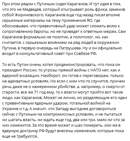 Постоянная, ползучая стабилизация конфликта входит, наконец, и в планы Кремля ("не Харьков, а санитарная зона"). Инструктора Запада на Украине - институционализация Украины как части западного ВПК, военной инфраструктуры, фактически уже обозначившаяся "зона Запада" на Украине. Никаких инструкторов ВС РФ уничтожать не будет. Максимум - 5-10 человек, и то для картинки в СМИ. Стороны быстро закроют этот вопрос (никакой эскалации по "настольным играм СВОП"). Сверху вишенкой на торте - "ядерные угрозы" (их роль - то же сдерживание и приглашение к переговорам).