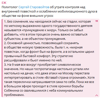 Загруженные файлы:Цитата: Администратор от 07.05.2025, 17:24Все проще, общество в массе не желает напрягаться. Пытаться его напрячь принудительно - получить массовый саботаж с дезорганизацией остатков того, что еще работает.