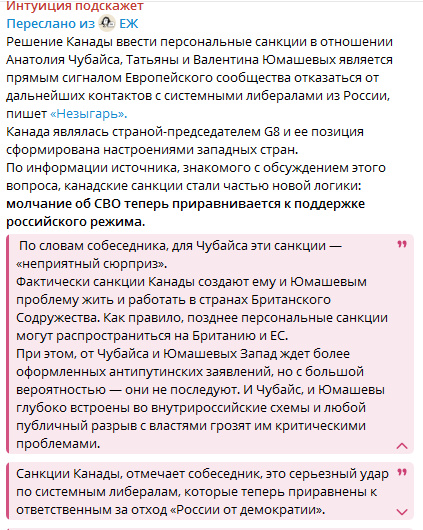 Цитата: Администратор от 20.06.2025, 00:37Еще одно подтверждение моего старого тезиса о том, что Запад ставит не на смену режима в Москве, а на снос государственности в принципе. В противном случае из оппозиции на Западе уже сколотили бы какое нибудь "правительство в изгнании" и продвигали его всеми доступными способами.