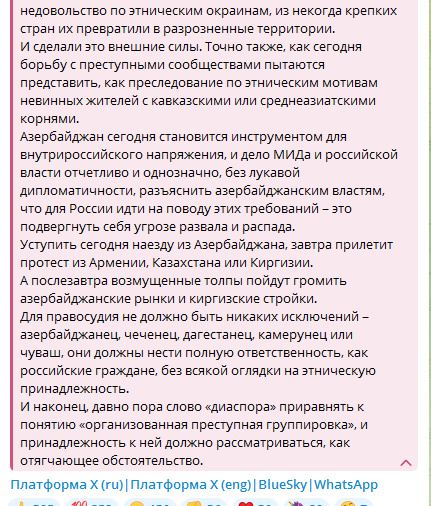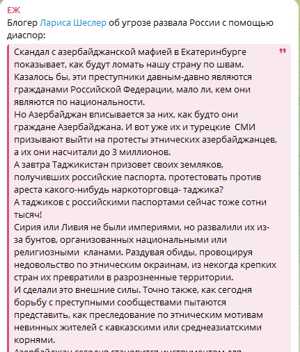 Но будучи оттесненными от вкуснух кормушек в России, главари диаспор, получив поддержку извне, вполне могут организовать гибридный Кавказский фронт. С бунтами/восстаниями, партизанщиной на СевКавказе при активной поддержке Турции и диверсиями/саботажем/шпионажем итд в самой России. Вот это вполне реально.
