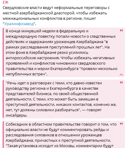 ПС. Дело 2001 г, по которому забили нескольких из диаспоры, было поводом. А недавно Азрб провернул похищение политоппонента в уральском регионе как раз силами диаспоры. https://t.co/Tul3UpvyGJ— Мр Мурык (@muryk412) June 30, 2025