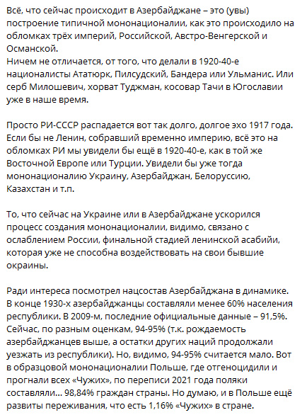 Так что да, нынешний распад продолжение распада советского. Но, что важнее, он не последний. Поскольку образовавшиеся в разультате распада Рф, Ук итп длнроподобные образования будут такими же паразитарными. Другой тип государственности на постСССР просто невозможен. А значит, и их ждет та же судьба: взаимоистребление и последующий распад на бандочки типа "Свадьбы в Малиновке".