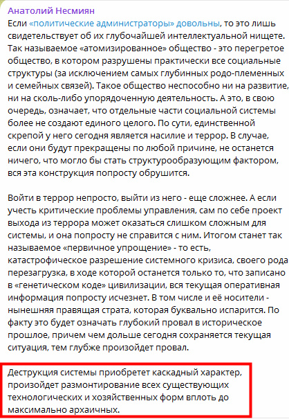 Цитата: Администратор от 03.07.2025, 23:37Как отмечал выше, аналога Майдана в России не будет, условия не те. Да и после Украины ГБ будет относительно следить за этим вопросом. Ключевой момент другой - деньги. Грызня паразитов идет по по плану и приближается к верхам. А значит, все большая часть экономики входит в зону турбулентности, тем самым снижая наполнение кормушек.