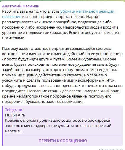 Цитата: Администратор от 17.08.2025, 20:12Кремль отложил публикацию соцопросов о блокировке звонков в мессенджерах: результаты показывают резкий негатив