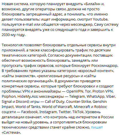 Цитата: Администратор от 03.09.2025, 20:17Расшифровывать контент система вряд ли будет, скорее начнет блочить все непонятное. Остается надеяться на развитие альтернативных видов связи, типа спутникового инета на телефон.