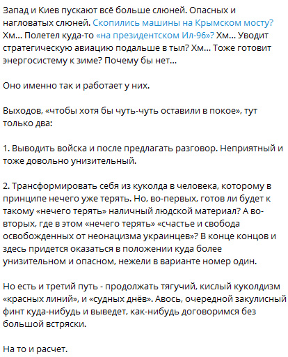 Загруженные файлы:Цитата: Администратор от 04.09.2024, 23:33Как то так и есть. Сейчас на Кремль хоть бочку помоев вылей, он молча утрется. Мечта о договорнячке и "вернуть все взад" в отношениях с Западом неизлечима.