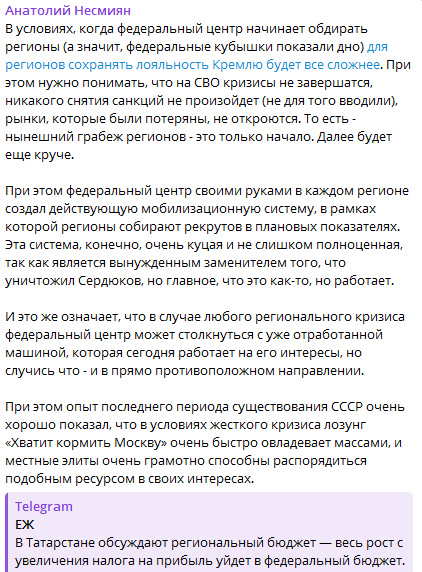 И это ожидаемо. Есть у Москвы деньги - есть Россия. Нет денег - каждый начнет по своим углам разбредаться. Потому как государство без денег никому не нужно и в первую очередь самим паразитам, которые и составляют основу госаппарата.
