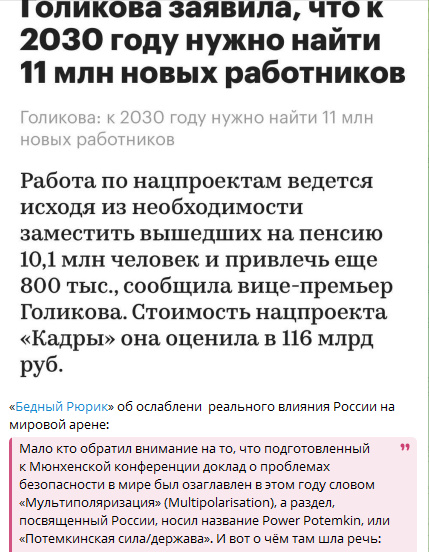 Более или менее успешно власти это удается, но вот поправить демографию и вызванные ею проблемы в экономике - нет. Завоз мигрантов в оптовых количествах это латание дыр, а не решение проблемы. Потому общий тренд в экономике все равно негативный, работать особо некому. И война, санкции итд это никак не изменят.