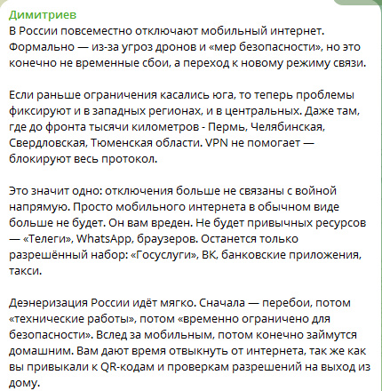 Отсюда главный вопрос, что будет раньше: Старлинк с инетом на телефоны или блокировки кремля?