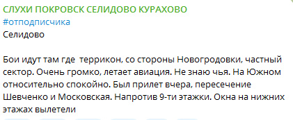 Изменилась ситуация в Селидово. Помимо охватов с севера и юго-запада, части Днр/Рф начали продвижение по самому городу. Занята восточная окраина, а с юго восточной продвинулись в западном направлении почти к центру.