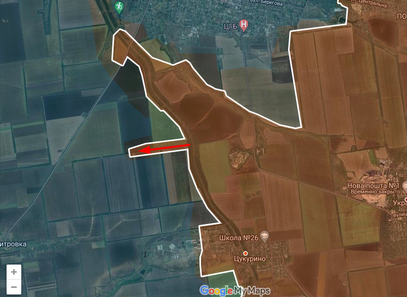«На земле» там все не так радужно, как по карте, впрочем, более-менее понимающие люди видят, что и по карте там все сложно. Вклинение очень узкое, простреливается со всех сторон, а смежники не смешат подтягивать фланги, успехи южнее у ВС РФ есть, но они очень локальные.