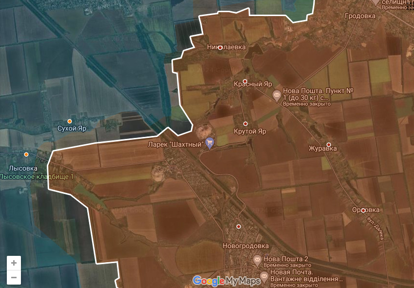 Украинский контрудар на Крутой Яр ожидаемо закончился ничем. От Крутого Яра Всу были отброшены почти на исходные позиции, потеряв при этом ранее занятый террикон. Очевидно, замысел был отодвинуть Днр/Рф от Красноармейска, уменьшив угрозу прорыва к нему, но реализация провалилась.