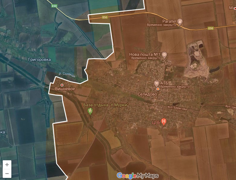 Помимо самого Селидово Днр/Рф заняли полностью и Вишневое западнее города.