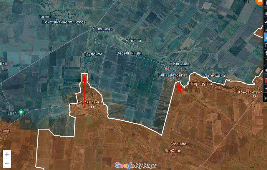 Цитата: Администратор от 31.10.2024, 04:26Основные события происходят на южном (ранее угледарском) участке. С ранее занятой Катериновки Днр/Рф развивают наступление в сторону Елизаветовки, а из Богоявленки в сторону Трудового в общем направлении на Курахово.