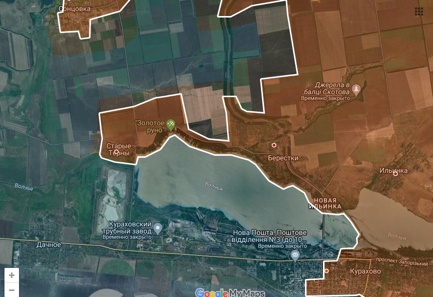 Севернее кураховского вдхр Днр/Рф расширют зону контроля вокруг Старых Тернов.