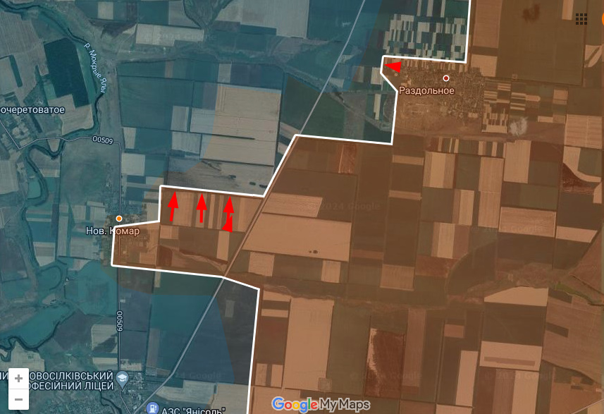 Одновременно Днр/Рф расширили проход к Новому Комару и немного продвинулись на запад от Раздольного.