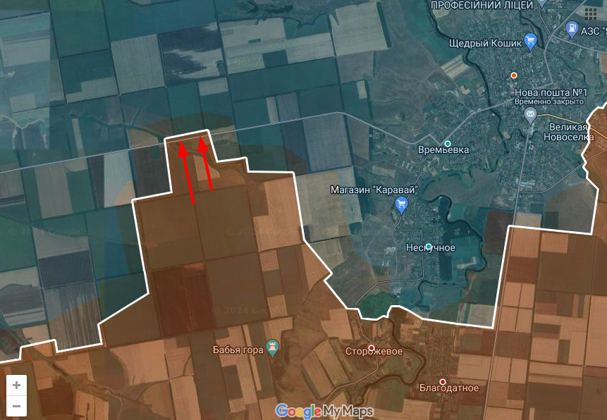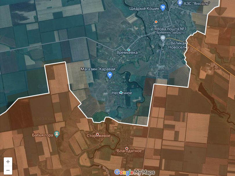 К ночи информация обновилась, Сторожевое тоже занято Днр/Рф. Такими темпами, пожалуй, они не будут возиться с Нескучным, а сразу пойдут на охват Великоновоселки с прилегающими поселками вместе.