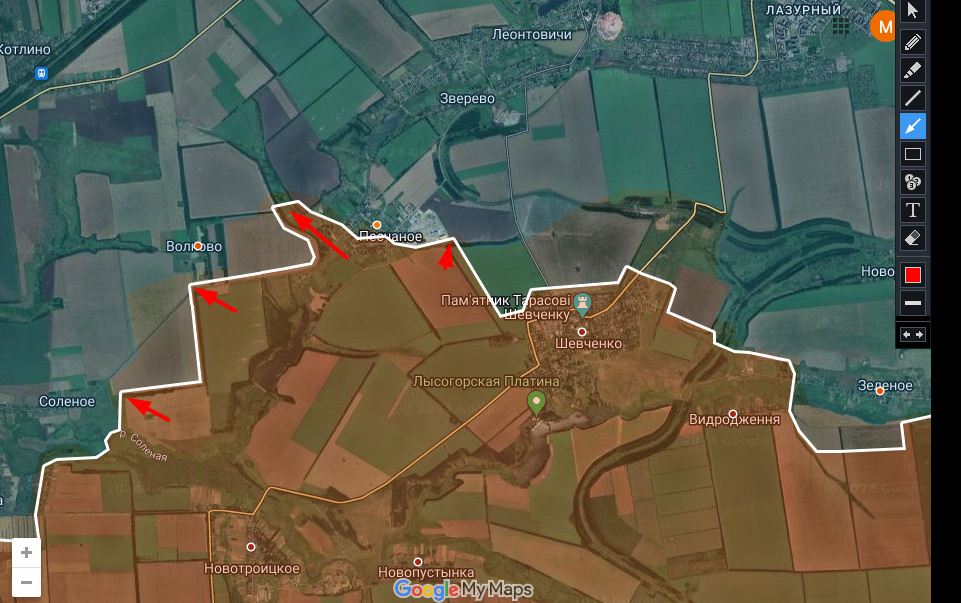 Цитата: Администратор от 24.12.2024, 00:05На северо-западном участке Днр/Рф не стали бодаться в лоб за Песчаное, а продвинулись в направлении Волково, юго-западнее выйдя на рубеж р. Соленая.
