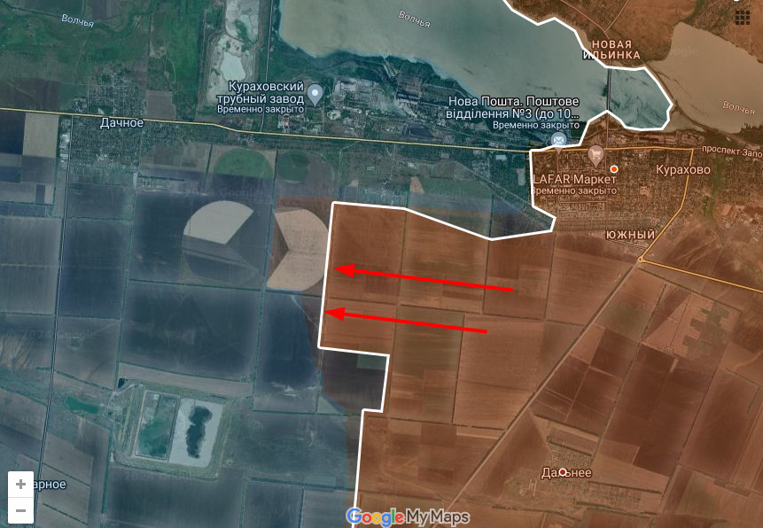 Курахово Днр/Рф обходят с юга полями, очевидно, у укрармии там нет подготовленной обороны.