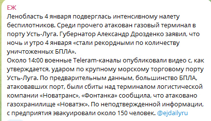 Цитата: Администратор от 04.01.2025, 18:18Очередной налет на нефтянку Рф, на этот раз экспортные териминалы в Усть-Луге.
