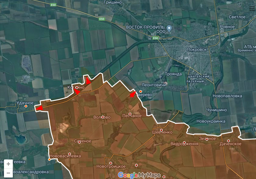 Днр/РФ заняли часть Котлино на красноармейском участке, Времьевку на великоновоселковском, Щербиновку западнее Дзержинска.