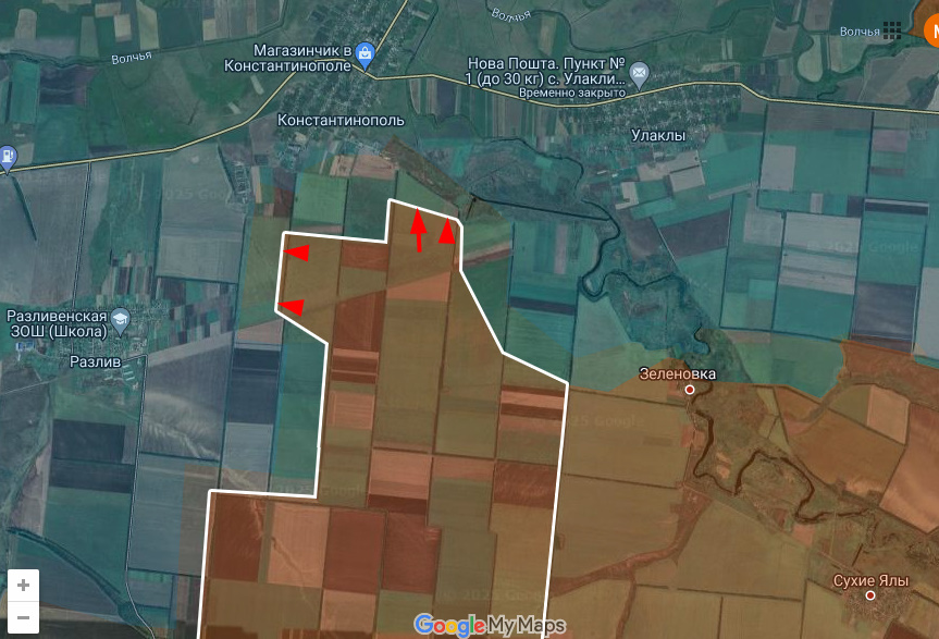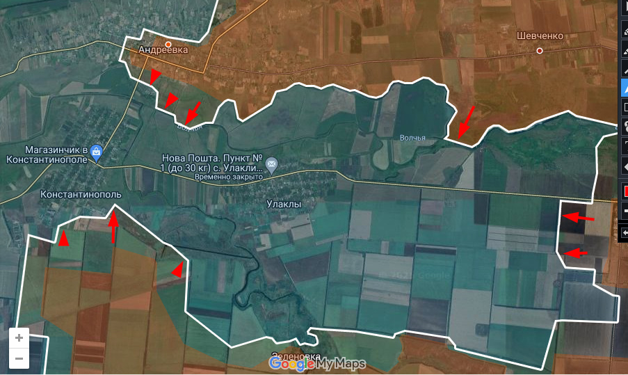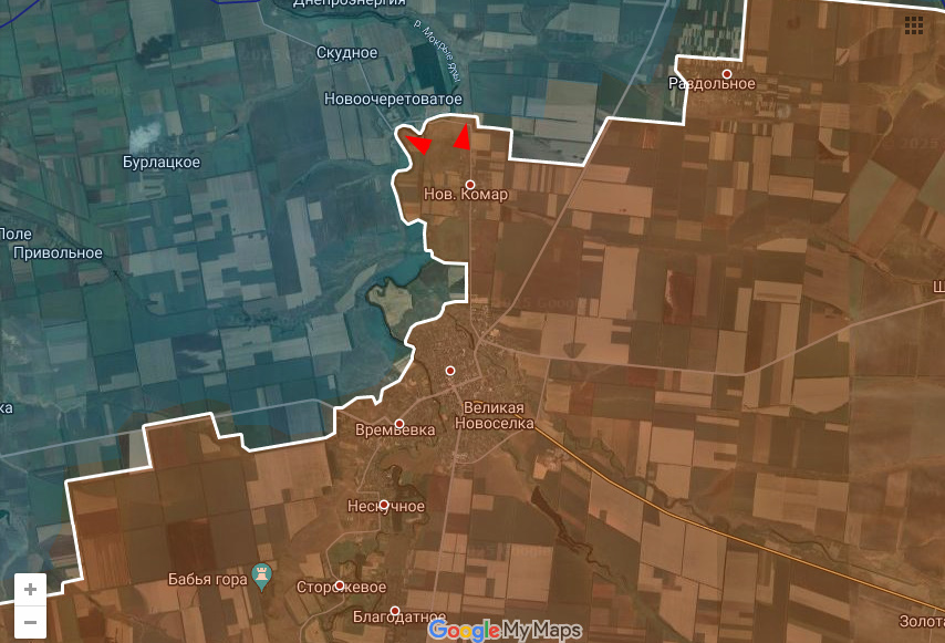 На участке северо-западнее Великоновоселки фронт выравнивается. Вероятно, следующим будет прорыв из района Нового Комара, там уже сделан задел для этого.