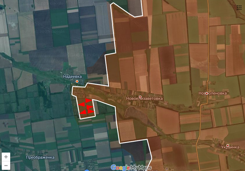Цитата: Администратор от 30.01.2025, 00:23Из изменений на текущий момент можно отметить расширение прорыва на юг от Надеевки.
