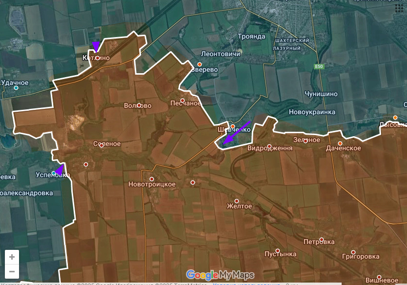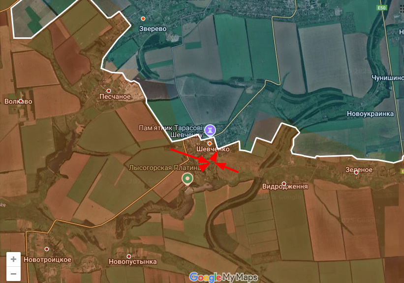 Цитата: Администратор от 22.03.2025, 03:12Га очеретинском участке Днр/Рф заняли ранее утраченные позиции севернее Зеленого Поля и продвинулись к Тарасовке.