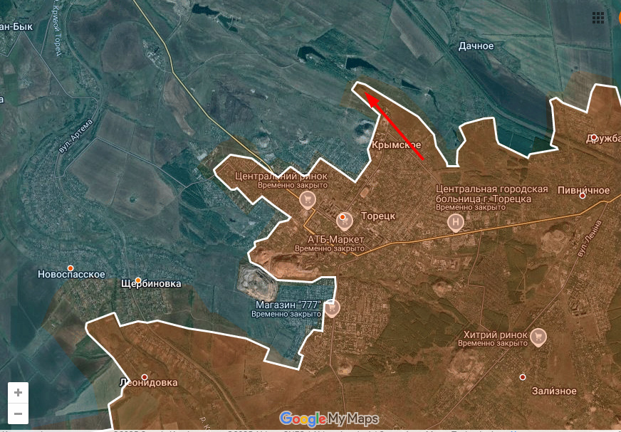 В Дзержинске продолжаются бои, однако севернее Днр/Рф смогли продвинуться около Крымского на северо-запад.