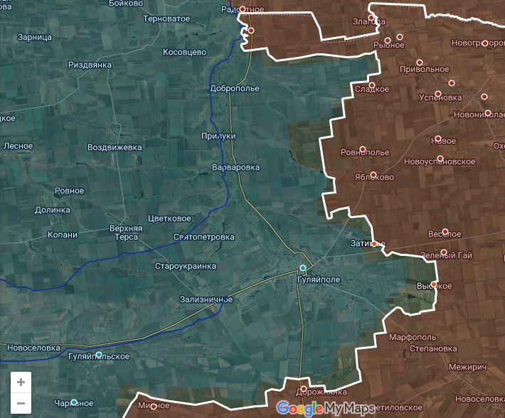 Цитата: Администратор от 23.11.2025, 00:38Дорога Покровское - Гуляйполе перерезана, Гуляйполе на грани полуокружения.