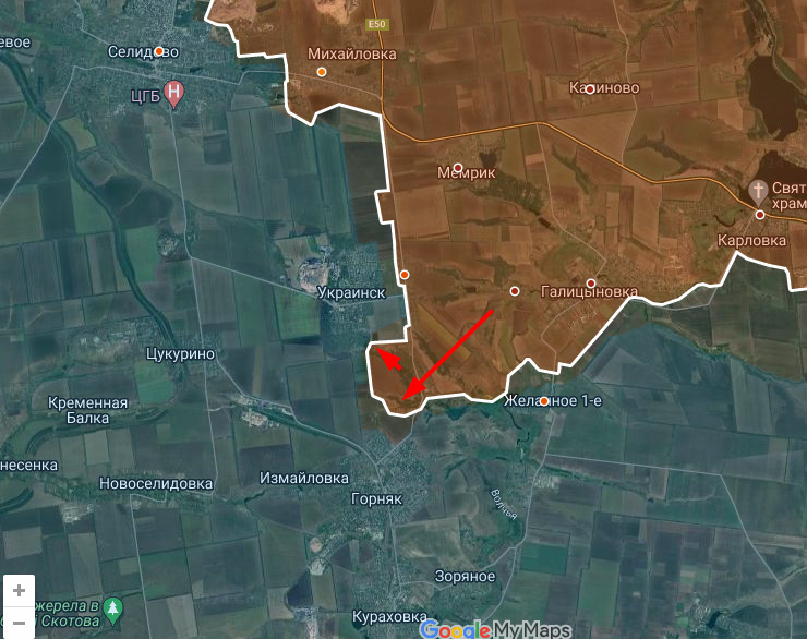 Пока основное событие чуть южнее селидовского направления. Части Днр/Рф смогли проломить оборону Всу между Украинском и Желанным и продвигаются в сторону Горняка, также заходя в Украинск с юго-востока и юга.