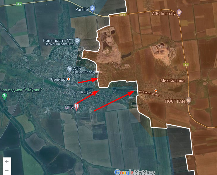 На селидовском участке Всу выбили Днр/Рф из южной (район ЦГБ) и юго-восточной частей города. Под контролем Днр/Рф осталась лишь северо-восточная окраина.