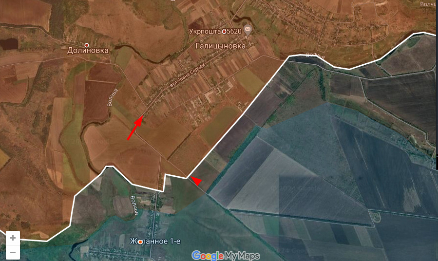 Галицыновка вроде как подконтрольна Днр/Рф, однако появилось видео, как утверждается, украинской БМП, высаживающей десант на окраине поселка.