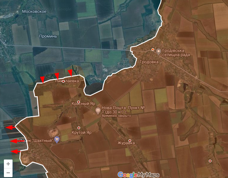 На северном участке идут бои без продвижения на западной окраине Гродовки, севернее Николаевки Всу удалось оттеснить Днр/Рф на юг, к окраинам поселка, но в то же время Днр/Рф атакует в направлении Сухого Яра.