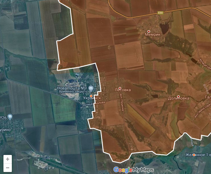 Противник охватывает Украинск и продвигаются между Селидово и Украинском, клин становится все больше, что характерно для тактики российской армии на этом участке, когда они пронизывают оборону ВСУ, а потом расходятся в разные направления.