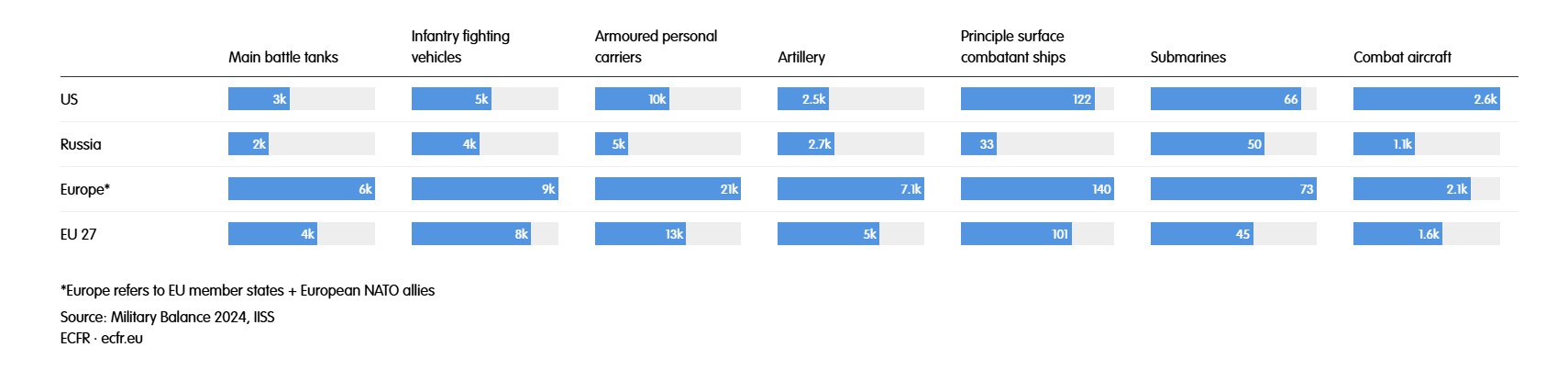 Цитата: Администратор от 07.03.2025, 16:16Причем по некоторым позициям у Европы вооружения больше, чем у Рф и США вместе взятых.