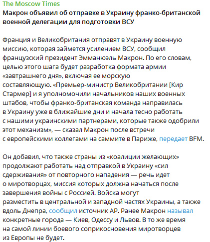 Цитата: Администратор от 28.03.2025, 16:47Иначе говоря, Европа демонстративно забила на мнение Москвы большой и толстый...