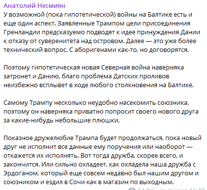 Про это и писал ранее. Трамп не царь, через менее чем 4 года придет другой, и унасекомливание кремляди возобновится. Кто из вменяемых бизнесменов вложится в долгосрочный проект с риском попасть на все бабки из за политики?