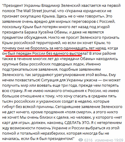 Подъебнул Трамп киевскую власть. Хотя Зеля тут и ни при чем, но тогда укрвласть отдала Крым Москве за признание их "партнерами". Достаточно вспомнить, что при Кучме Украина даже Тузлу, крошечный островок, не отдала, упираясь вплоть до войны.