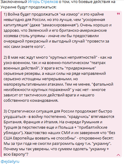 Цитата: Администратор от 27.04.2025, 22:24Гиркин о перспективах:
