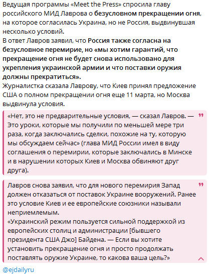 После вчерашнего заявления Путина о перемирии без условий сегодня Лавров опять про условия перемирия. Похоже, Кремль решил запутать Трампа. Как по мне рискованная затея...