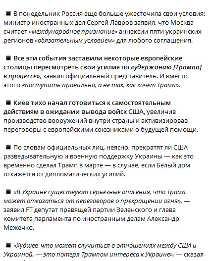 Похоже, то, о чем мечтал Киев, разозлить Трампа на Москву, Кремль успешно делает собственными усилиями. После переговоров с Уиткоффом Лавров лично дезавуирует все положительные итоги.