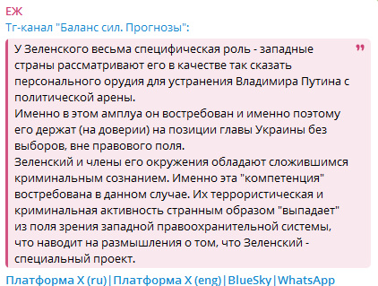 Загруженные файлы:Цитата: Администратор от 28.04.2025, 23:39Проще говоря, его терпят, пока он нужен. А нужен он для стратегической задачи: максимального ослабления России. Чтобы там не говорили о перемирии, эту задачу никто не отменял.