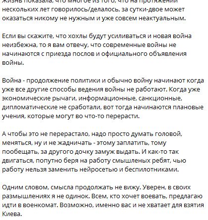 Тут согласен, войну с Европой Россия заведомо не вытянет. Почему я и сомневаюсь сильно, что начнет. Другое дело, что в случае перемирия Ук под прикрытием Европы начнет провокации, сама Европа устроит морскую блокаду итд, но даже в случае прямого наступления Кремль будет тянуть до последнего, наверное, до бомбежек бункеров власти, отчетливо представляя перспективы войны с объединенной Европой.