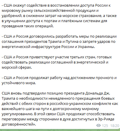 Цитата: Администратор от 26.03.2025, 23:43Реакция команды Трампа на условия Кремля по «зерновой сделке»