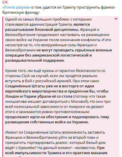 Загруженные файлы:Цитата: Администратор от 26.03.2025, 17:10Как раз то, что я писал ранее. С амерами кремлядь может поиграться в договорнячки, но Европа играться не хочет. А именно её санкции самые болючие. И обратите внимание, вывод войск только одно из условий. Гаагу и прочие прелести, типа репараций, сдачи ЯО,люстраций никто не отменял.