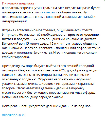 Я много раз писал, (https://t.me/intuition2036/8184) что война закончится тогда, когда все делящие остатки пост-советского получат своё.