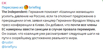 — ЕС и администрация Трампа согласовывают план 30-дневного прекращения огня. При отказе РФ последуют новые санкции.